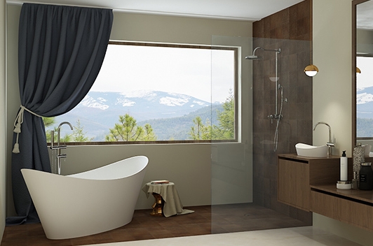 Latvijā ražota brīvi stāvoša vanna no akmens masas